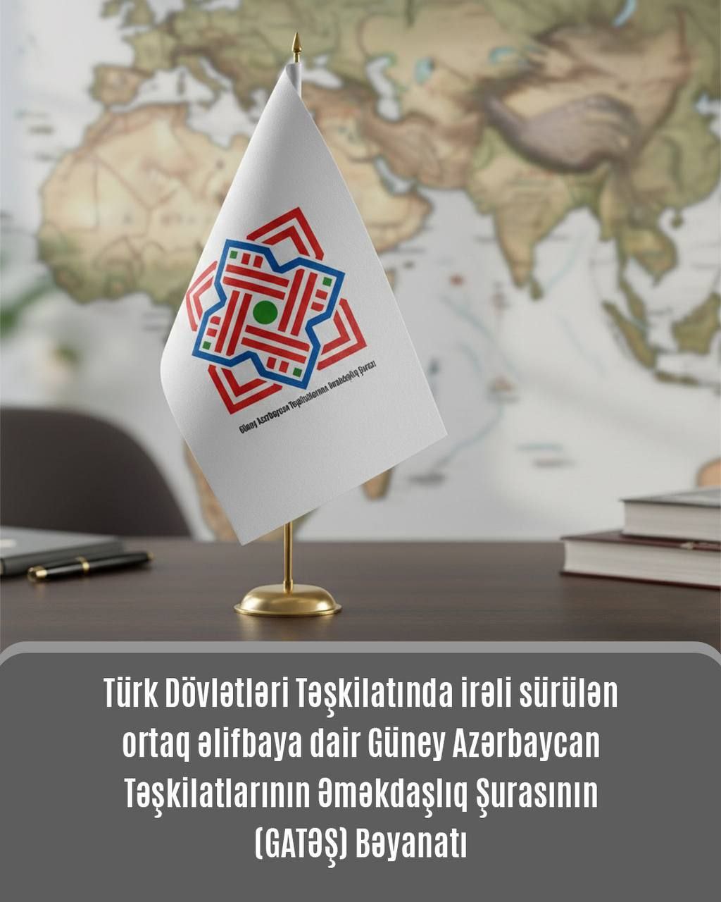 گونئی آزربایجان تشکیلاتلارؽنین امکداشلؽق شۇراسی (گاتَش)، تۆرک دؤولتلری تشکیلاتؽنین (تدت) ۱۲-جی زیروه توْپلانتیسیندا ایرلی سۆرولن اوْرتاق تۆرک الیفباسؽ - یعنی تۆرک خالقلارؽ اۆچون اوْرتاق یازؽ سیستئمی کیمی قبۇل ائدیلمهسی تکلیفینی بؤیوک ممنۇنییت و گۆجلو دستکله قارشؽلاییر. بۇ تشبۆث تۆرک دۆنیاسینین مدنی، علمی و تئکنوْلوژی اینتئقراسیونونو گۆجلندیرمک ایستقیامتینده مۆهوم آددؽمدیر و خالقلاریمیزؽ بیرلشدیرن اوْرتاق دیل، تاریخ و مدنیت کؤکلرینی عکس ائتدیریر.