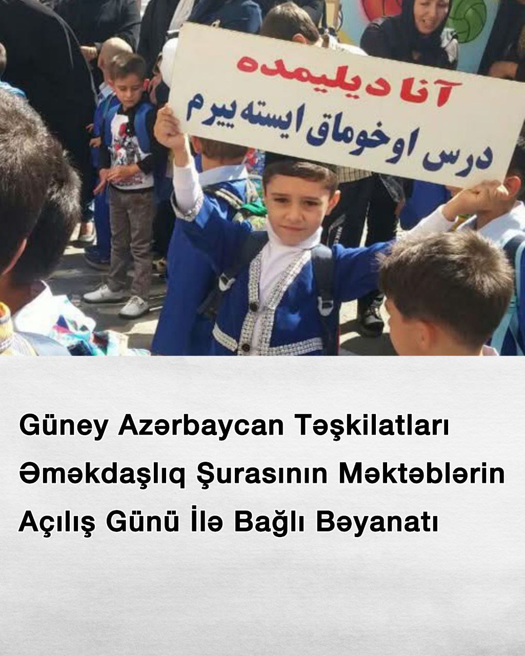 Bu gün İran adlanan coğrafiyada məktəblər açılır. Ancaq Azərbaycan türkcəsi qadağalar yaşayır! Təssüf olsun ki, milyonlarla Azərbaycan türkü övladların doğma ana dilində təhsil almaq haqqı yenə də qadağalar altında boğulur! Mədəni soyqırım davam edir!