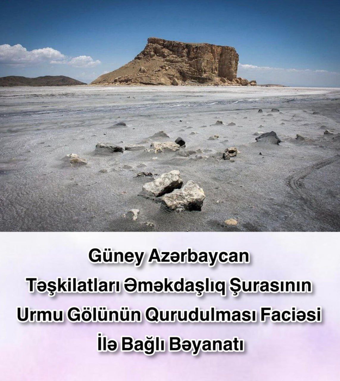 Biz Güney Azərbaycan Təşkilatları Əməkdaşlıq Şurası olaraq İran İslam Respublikasına rejiminə xəbərdarlıq edirik ki, Türk millətinin səbrini daha artıq sınamasın, çirkin planlarını kənara qoyaraq Urmu Gölünün xilas etmə layihəsini tez bir zamanda vicdanlı Azərbaycanlı mütəxəssislərə təhvil versin və onun büdcəsini də Azərbaycandan taladığı resurslardan təmin etsin. Əks halda, çox keçməz ki, Türk millətinin qəzəbli reaksiyası ilə üz-üzə qalacaq və şübhəsiz ki, bütünlükdə Azərbaycan Milli Hərəkatı bu meydanda millətimizin yanında olacaq.